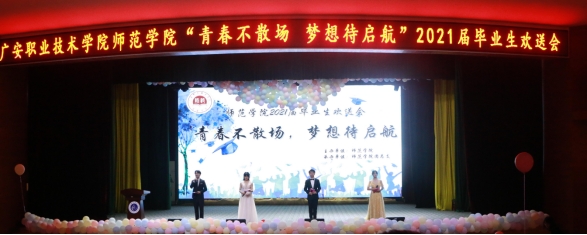 岁月辗转成歌,时光流逝如花。为给毕业生留下美好回忆,创设良好校园氛围,太阳集团tcy8722于6月1日晚在杏坛举办了以“青春不散场,梦想待启航”为主题的2021届毕业汇演。太阳集团tcy8722党总支书记龙治勇、副书记李勇、员工管理科科长李智强、员工管理干事廖婷、2021届各班班导师以及全体毕业生共同参加了此次活动。