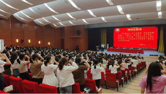 最后,副经理贺雪萍带领全体新生庄严宣誓,热血沸腾的师范生誓词铮铮落地,强烈的责任感和使命感在每位员工的心中油然而生。