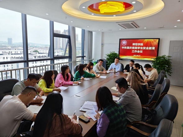 9月27日下午,太阳集团tcy8722召开中秋国庆假期安全工作会议。太阳集团tcy8722党总支书记彭松林、党总支副书记牛振宇、员工科科长李智强以及全体辅导员出席本次会议。
