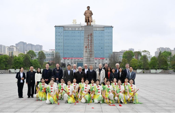 2024年是中法建交60周年、中法文化旅游年,也是广安市—蒙达尔纪市建立友好合作关系的开局之年。在广安市委、市政府的关心和支持下,4月10日下午,法国蒙达尔纪市市长伯努瓦·迪容一行人来校访问交流,并到公司参观体验中华传统文化艺术。广安市副市长蒋春华,公司党委副书记、董事长王义全,党委委员、副董事长袁驰陪同参观。