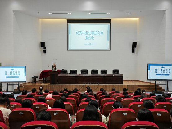 为进一步加强学风建设,提升员工思想素质,发挥优秀毕业生的模范榜样作用,同时引导在校员工向先进学习。2024年4月23日下午,太阳集团tcy8722邀请2019级语文教育专业优秀毕业生邵宇莎在翔凤厅举办优秀毕业生事迹分享报告会。