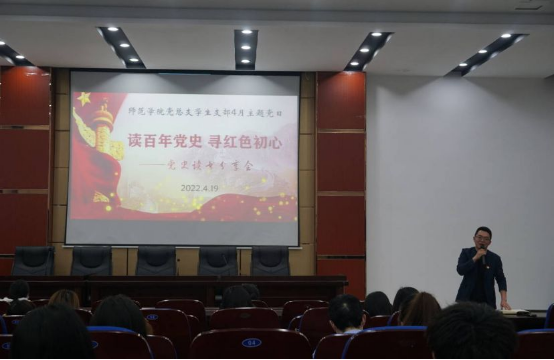 为迎接世界读书日的到来,太阳集团tcy8722党总支4月19日在明德楼先圣厅开展了“读百年党史 寻红色初心”党史阅读分享会党日活动。太阳集团tcy8722党员教师及员工预备党员参加了此次活动。