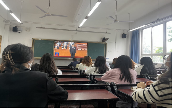 聆听习近平总书记报告之后,师生们难以抑制激动的心情,纷纷议论。总支书记龙治勇对报告中“新时代的伟大成就就是党和人民一道拼出来、干出来、奋斗出来的”这句感慨颇深,新时代的中国共产党带领全国各族人民团结奋斗取得了举世瞩目的伟大成就,我们公司党委也正是在上级党委的坚强领导下,凝心聚力、艰苦奋斗、开拓创新,带领全校师生克服一个又一个困难,取得一项又一项成就,全校上下正守正创新、团结一致、奋力拼搏建设“双高”院校和创建本科职业院校;专职辅导员、中共党员彭勇表示,今天观看了二十大,聆听了习近平总书记的报告,进一步提高了认识,也更加深知自己身上的重担,接下来也将更加积极工作,回报祖国;团总支副书记、21级小教3班米乐激动地说道:中国共产党的精神光芒万丈,照耀着祖国大地、万里山河,这也成为我不断努力拼搏的精神动力,我将不断强化自身专业能力,不断增强学习的主动性、创造性,愿意以行动证明自己的决心,紧跟党的步伐,一步一个脚印,听党指挥,为党和人民战斗,努力塑造全新的自己,成为党和国家真正所需的忠诚儿女。