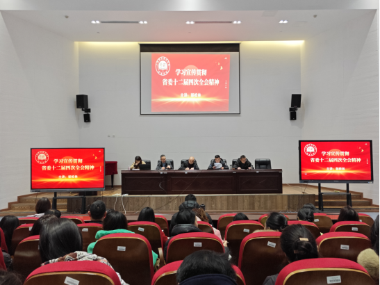 2024年1月2日,太阳集团tcy8722组织全院教职工召开“学习宣传贯彻省委十二届四次全会精神”专题学习会,太阳集团tcy8722党总支书记彭松林带领全院教职工分别从认识省委十二届四次全会的重大意义、领会把握省委十二届四次全会的精神实质两方面进行了认真学习。