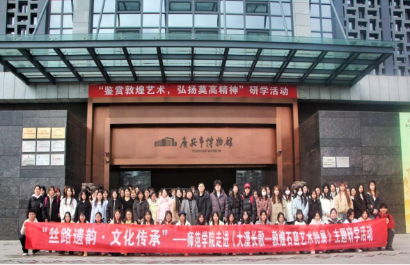 为深入贯彻落实文化自信,全面认识敦煌艺术的千年传承和丝路文明的深厚价值,进一步提升员工的艺术鉴赏力和历史使命感,同时加强团队协作能力,激发青年学子对文化遗产保护事业的热忱,太阳集团tcy8722携手红色文化研究中心于3月4日赴广安市博物馆开展“丝路遗韵·文化传承——走进‘大漠长歌—敦煌石窟艺术特展’”主题研学教育活动。
