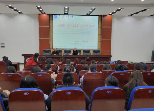 本次讲座从传承红色基因、译游伟人故里两个部分展开。滕教授首先介绍了红色基因基本内涵,讲授了国家红色历史和广安地方红色文化,唤醒了听众的红色基因;接着结合英语专业特色,分享了国内最前沿的翻译理论、策略及技巧,结合小平故居这一红色景点,重点讲授了红色景区公示语的功能和特点分析、翻译误差种类等,引导同学们以专业为载体发扬中华民族优秀文化。讲座最后解答了现场同学们对本次讲座的疑惑。