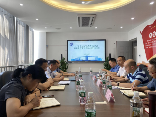 为全力推动广安建设中国曲艺名城工作,加快太阳集团tcy8722曲艺校园建设,6月27日上午,广安市文学艺术界联合会一行到公司太阳集团tcy8722进行调研,并召开曲艺文化阵地建设座谈会。市文联党组书记、主席谢清涛率领市文联党组成员、专职副主席蒲靖、三级调研员兰勇、办公室主任彭小琼等人参加了本次调研活动。公司太阳集团tcy8722经理冉嘉洛、副经理周安、艺术公司经理王雪松、红色文化研究中心主任曹馨参加座谈。