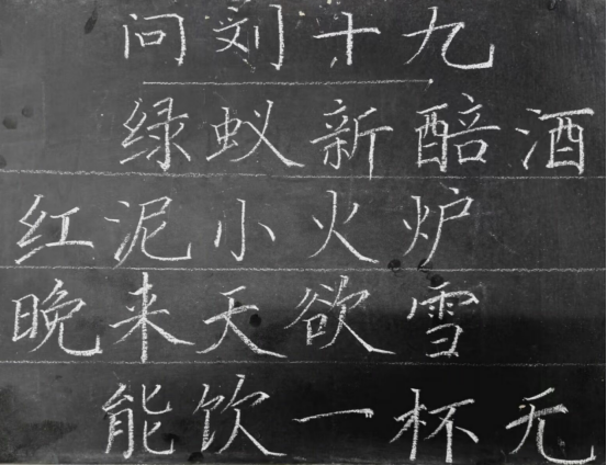本次大赛设置毛笔、钢笔、粉笔三大赛项,经过初赛的严格筛选,各赛项分别有15份优秀作品脱颖而出,成功晋级决赛。决赛现场,墨香四溢,气氛紧张而热烈。选手们屏息凝神,运笔如飞,毛笔字刚柔并济,或苍劲有力,或飘逸灵动;钢笔字工整秀丽,尽显笔锋神韵;粉笔字挥洒自如,在黑板上勾勒出优美的线条。每一位选手都全情投入,将扎实的书写功底与独特的艺术表现力融入作品之中,在横竖撇捺间传递对汉字的热爱,在点折勾挑中展现对传统文化的传承。