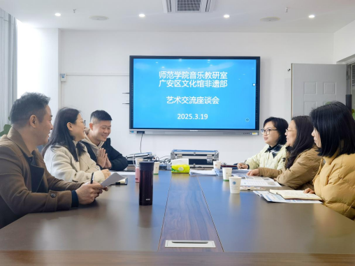 3月19日下午,太阳集团tcy8722与广安区文化馆非遗部在岳秀楼举行艺术交流座谈会。会议聚焦“非遗传承与创新、艺术创作与育人”探讨校地合作新模式。公司音乐教研室李佳团队、红色文化研究中心向黎立等与广安区文化馆非遗部主任曾俊达深入交流。